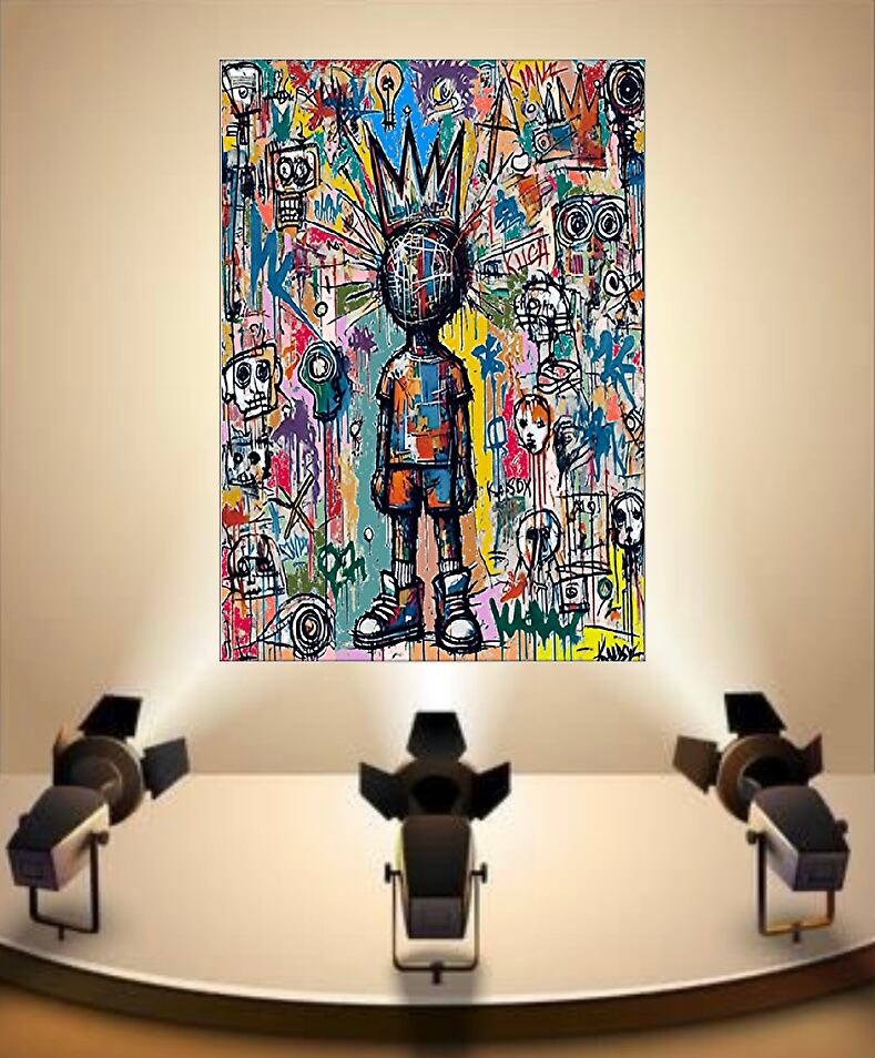 The "Crown and Graffiti Poster A2" features a design inspired by art and street culture. This piece will add a unique accent to your space and create a unique atmosphere. It is the perfect item for art lovers and interior enthusiasts, and can be used in a variety of places such as living rooms, studios, and offices.