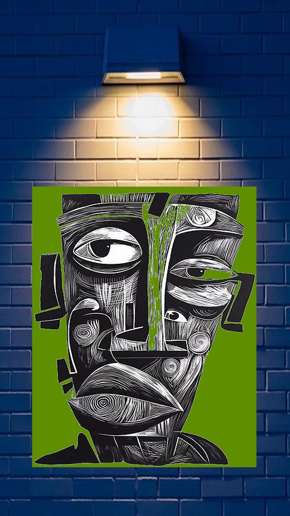 "Silent Face - Green" is an attractive item that creates an artistic interior. This art panel features a unique design and a calm green color. It fits in a variety of spaces such as living rooms, bedrooms, and offices, creating a calm atmosphere.