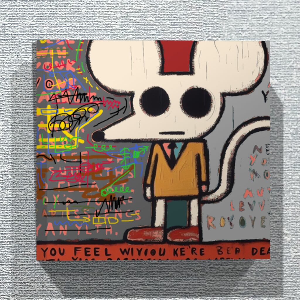"Incoherent Utopia" is an art panel featuring a cute rat design, bringing a unique and fun impression to your space. This item can be used as an accent to enhance the style of your interior in various scenes such as the living room, bedroom, or office. The square shape is visually attractive and creates a warm atmosphere.