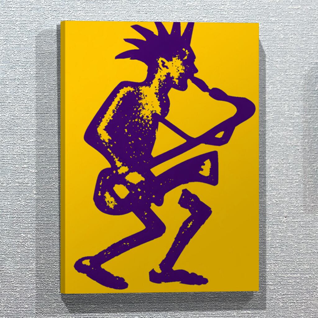 黄色の熱に浮かび上がる、紫の影のサックスマン。